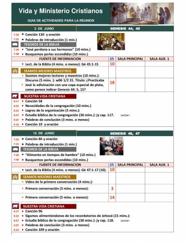 Una hoja excel para las asignaciones de la reunion entresemana con formato para 4 y 5 semanas