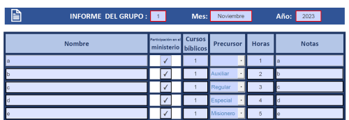 Hola, espero este archivo les sea de utilidad. Está diseñado para el spte. de grupo o siervo de grupo.
