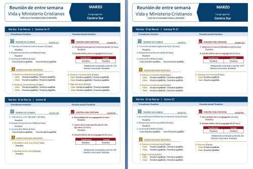 Reunión Vida y Ministerio Cristianos  Marzo  Color: Azul   2 Salas