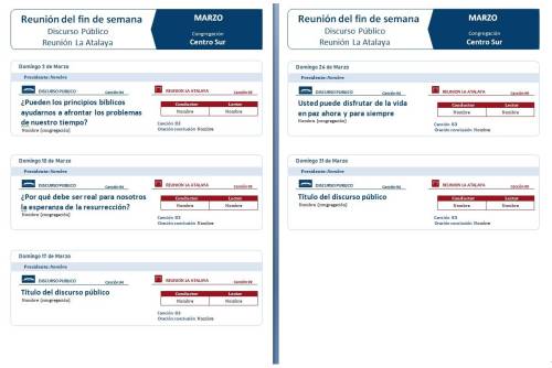 Reunión Vida y Ministerio Cristianos y Reunión Pública del fin de semana.