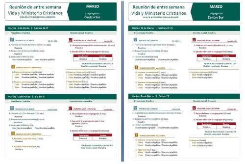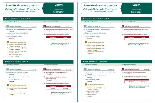 Reunión Vida y Ministerio Cristianos  Marzo  Color :Verde  1 Sala