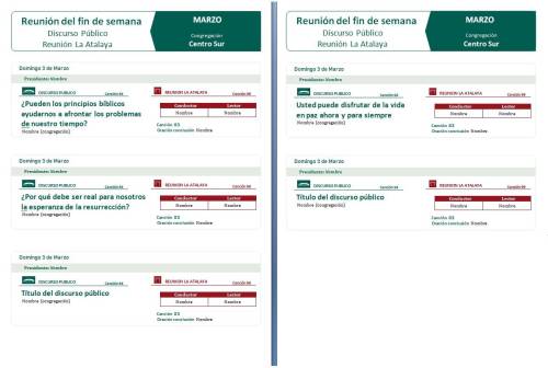 Reunión Vida y Ministerio Cristianos  Marzo  Color: Verde  2 Salas