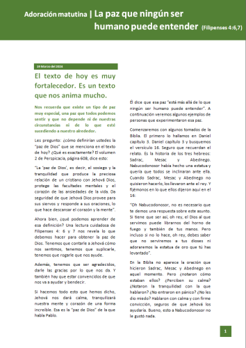 Adoración Matutina | La paz que ningún ser humano puede entender