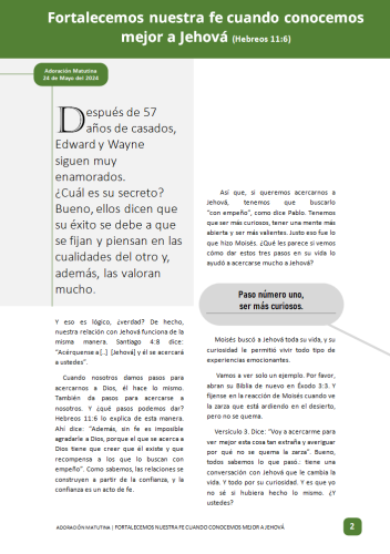 Adoración matutina | Fortalecemos nuestra fe cuando conocemos mejor a Jehová (Hebreos 11:6)