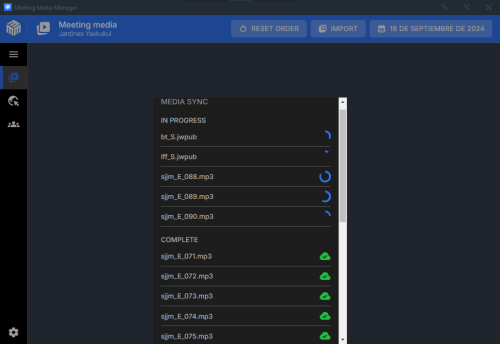 Les comparto un Una aplicación multiplataforma para descargar y presentar medios (imágenes y videos) para reuniones de congregación en cualquier idioma. Las características incluyen administración de medios recurrente y personalizada, sincronización de congregaciones y herramientas de presentación de medios para reuniones de Zoom híbridas, en persona o totalmente remotas.