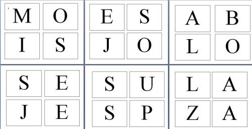 Es un divertido juego que puedes imprimir, tiene las letras por separado. Por ejemplo si queremos hablar de Moises (imprimes las letras M O I S E S y viene con una palabra clave para dar una idea de quien se puede tratar, en este caso el fue encontrado en un rio la palabra clave es AGUA).