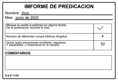 Mis hermano les traigo una app de: Informé de predicación uso oficial uso para todo publico
