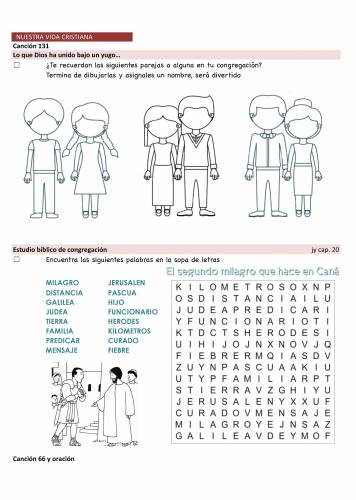 Contiene dos hojas de actividades para niños basadas en la información que se tratará en la próxima reunion de entre semana.