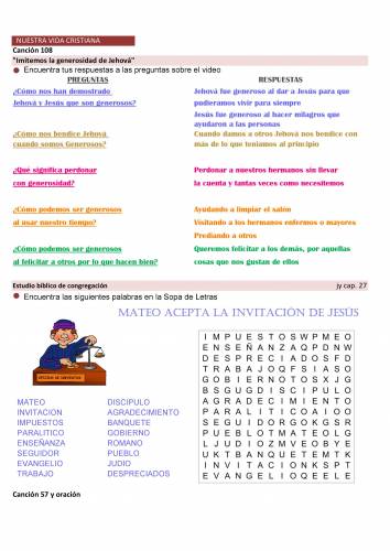 Contiene dos hojas de actividades para niños basadas en la información que se tratará en la próxima reunion de entre semana.