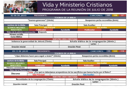 Programa para la reunión vida y ministerio cristianos para el mes de Julio de 2018