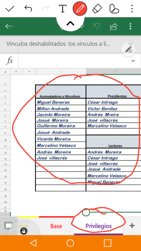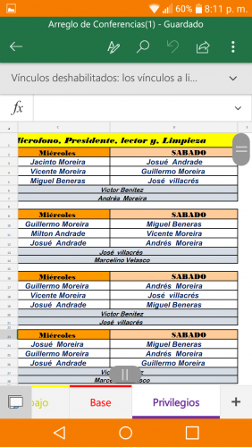 en hoja de trabajo puedes organizar lo de los arreglos de conferencias . En base no tienes que hacer nada solo está la información para los números de bosquejos. Y en Privilegios puedes asignar los privilegios para la reunión de fin de semana