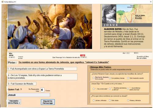 Un Juego, (en versión de prueba), basado en las fichas de personajes bíblicos , que aparecieron en las revistas , enfocado a niños, sin embargo muy bueno aun para los mayores, pues nos ayuda a repasar datos interesantes de los personajes.