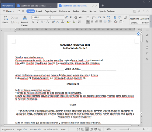 👇🏻 Subtítulos formateados de la sesión del Sábado por la tarde completo de la Asamblea Regional 2021. En Word y PDF. Saludos